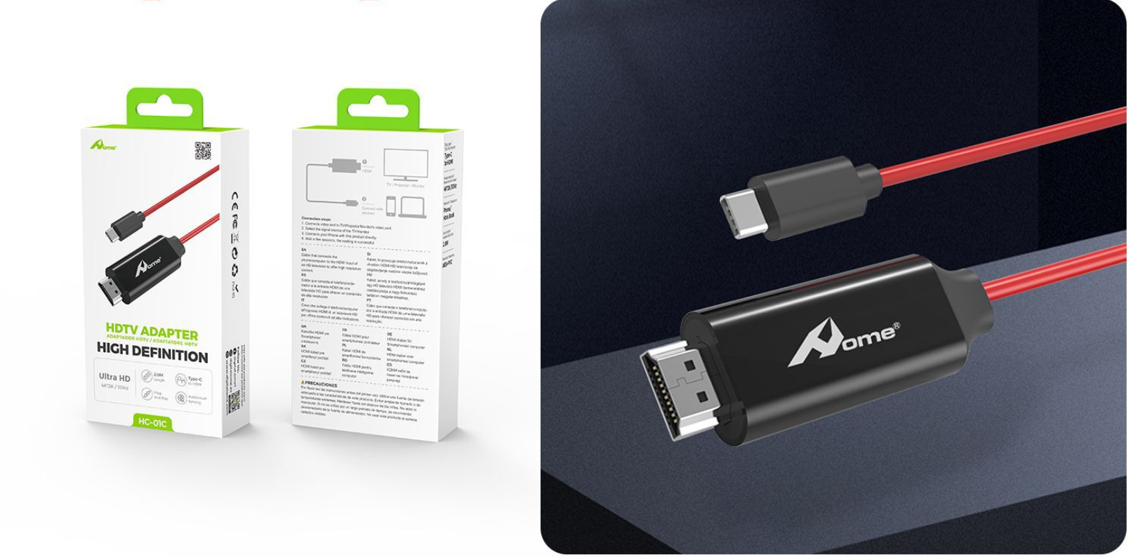 adaptador hdtv. type c male - hdmi male 2m lunghezza, 4k/2k e 30Hz Per saperne di piΓΉ